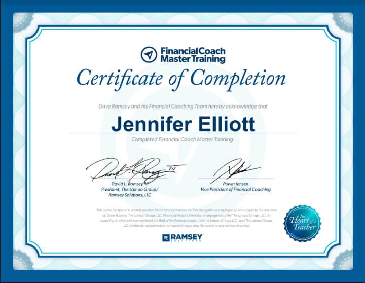 When you start working with someone on your finances, you want to make sure you are working with someone you can trust – who is the right fit for you and will help you make good decisions and reach the financial goals you have set for yourself and your family. A RamseyTrusted tax ELP is someone who has been vetted and coached to always act in a client’s best interest. Ramsey has helped thousands of people become debt free and reach their financial goals and I am trusted by the Ramsey team to help you do the same. Click to read more information on a RamseyTrusted advisor.